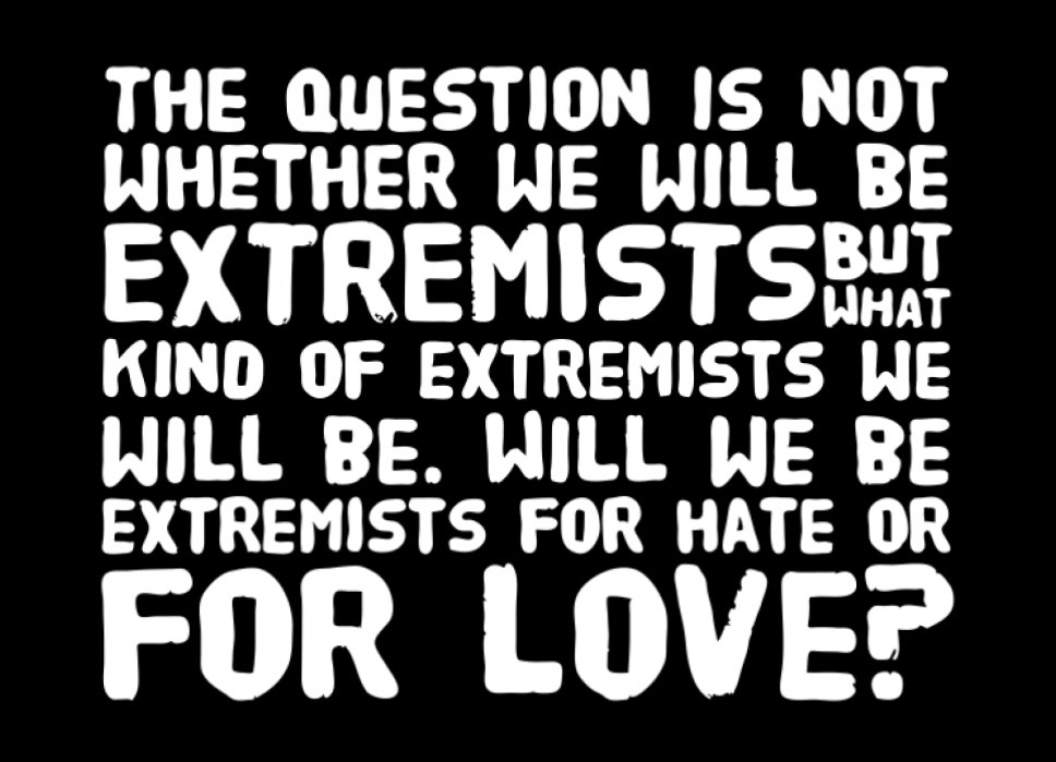 Martin Luther King, Jr. is still a beacon of clarity to those of us in the fight for a system that is based in genuine democracy, justice and love. May we all take some time today to meditate on his life and words, and (re)commit ourselves to applying them going forward. And we are proud to call ourselves “extremists” for the cause.
