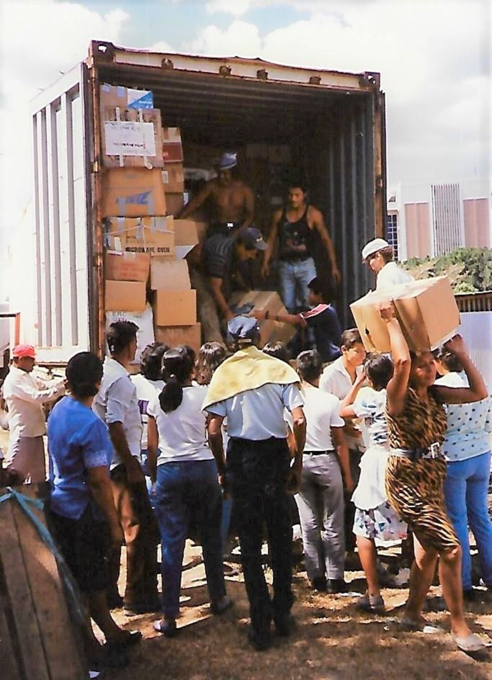 Because of paperwork hassles hauling aid through Mexico, Guatamala and into El Salvador, all the aid was shipped by boat. Aid arrived by truck from the port.