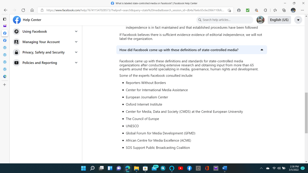 Facebook believes that governments may exert editorial control over state-controlled media in a range of ways and to different degrees. If Facebook believes that the evidence assessed suggests that editorial control by a government exists, we will label the organization unless we consider there is sufficient evidence of protections in place to ensure editorial independence.