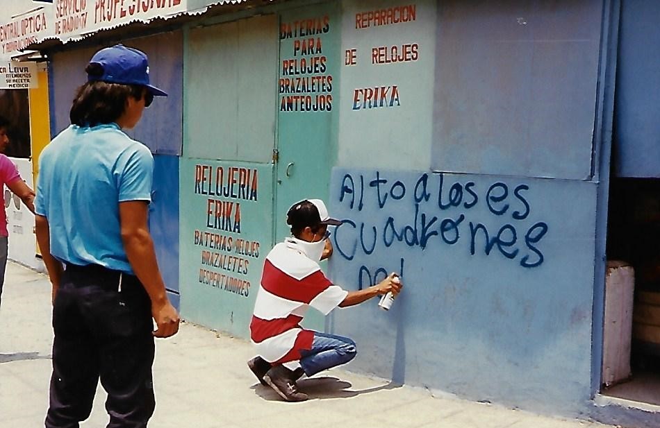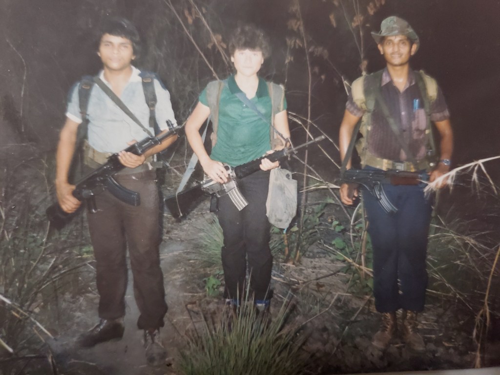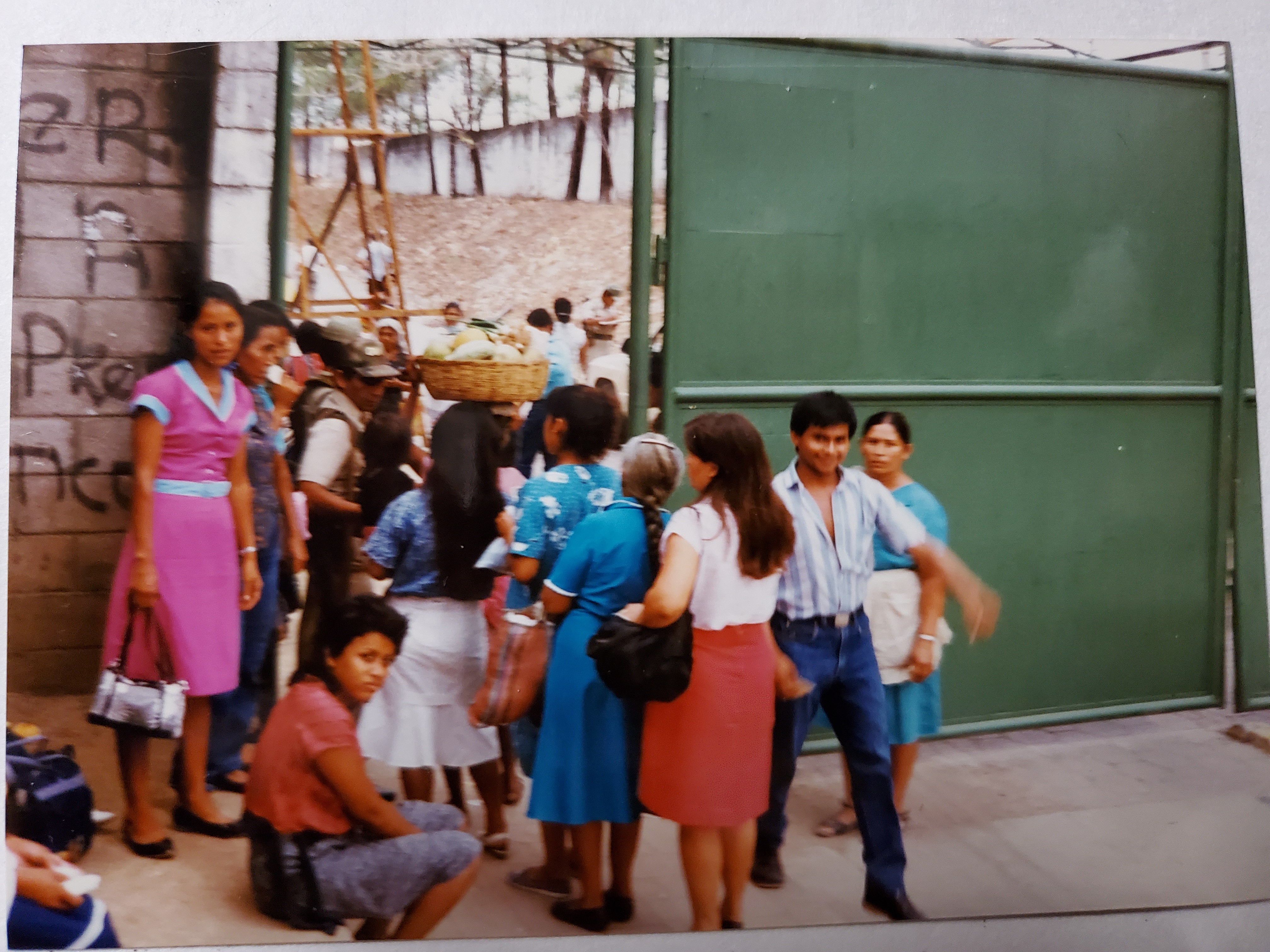 Our group when into the mountains to visit one of the resettlement communities in eastern El Salvador. Met some young FMLN guerrillas on the trail. This was one of the conflict areas in the 1970-90s against the U.S. supported oligarch’s military. Meanwhile the death squads terrorized the communities in the cities. Below: Visiting these mountain communities was like going back into the 19th century (no electricity, running water but maybe a truck or two). * Members of our Carvan were able to get my brother-in-law to be, Manuel out of prison. I was able to visit him in prison with family members and to be outside at his release. When I met him later on a mountainside with his sisters and kids, he told me he would continue his political activities and resistance. A few years later and his family has never seen him again. * Meanwhile in the cities it was amazing how bold the resistance could be. McDonalds look like a fort and the American embassy was a fort. Death squad black tinted Cherokee Jeeps were frequent visitors there. Large marches against the Oligarch Death Squad Government.