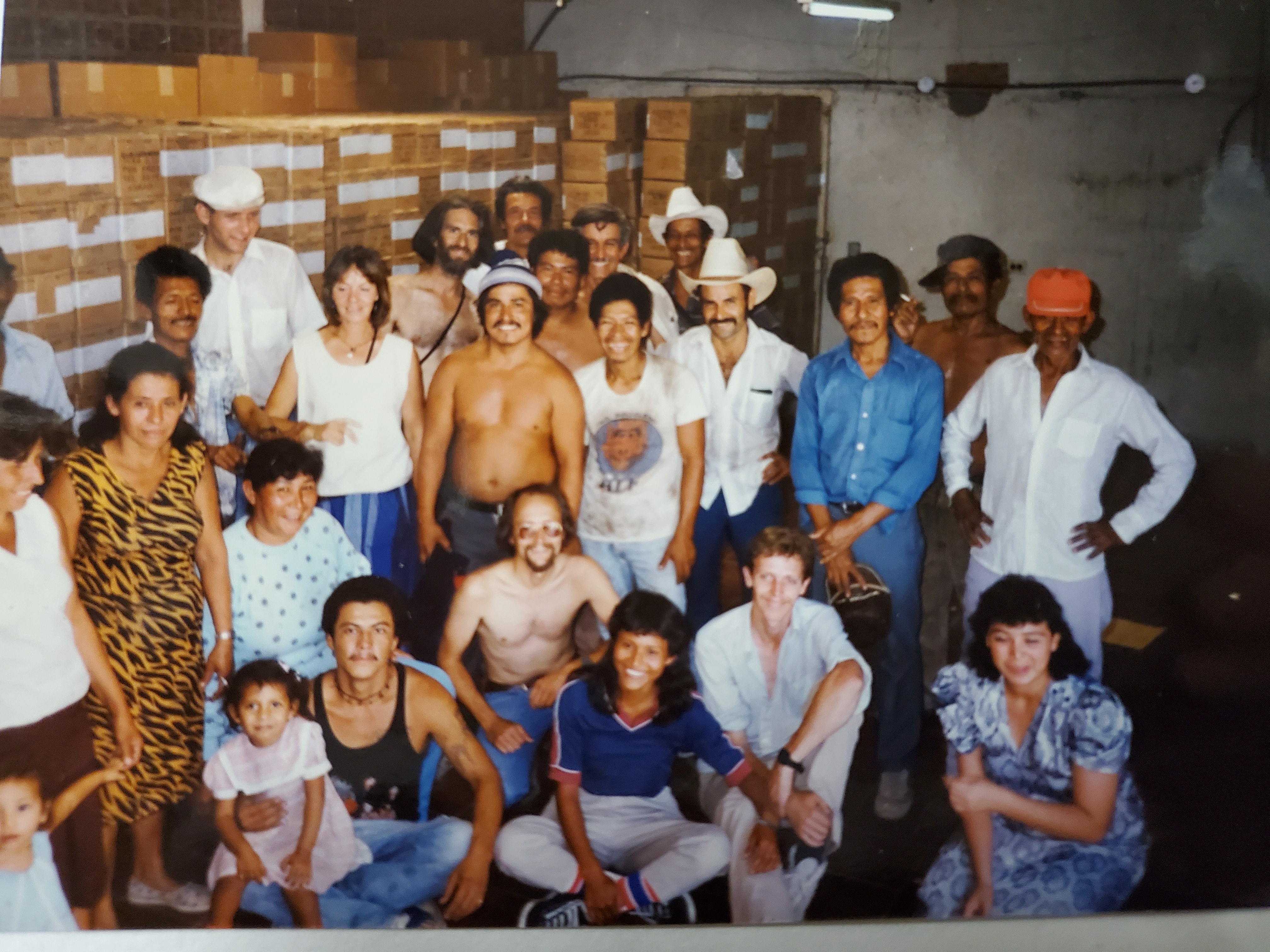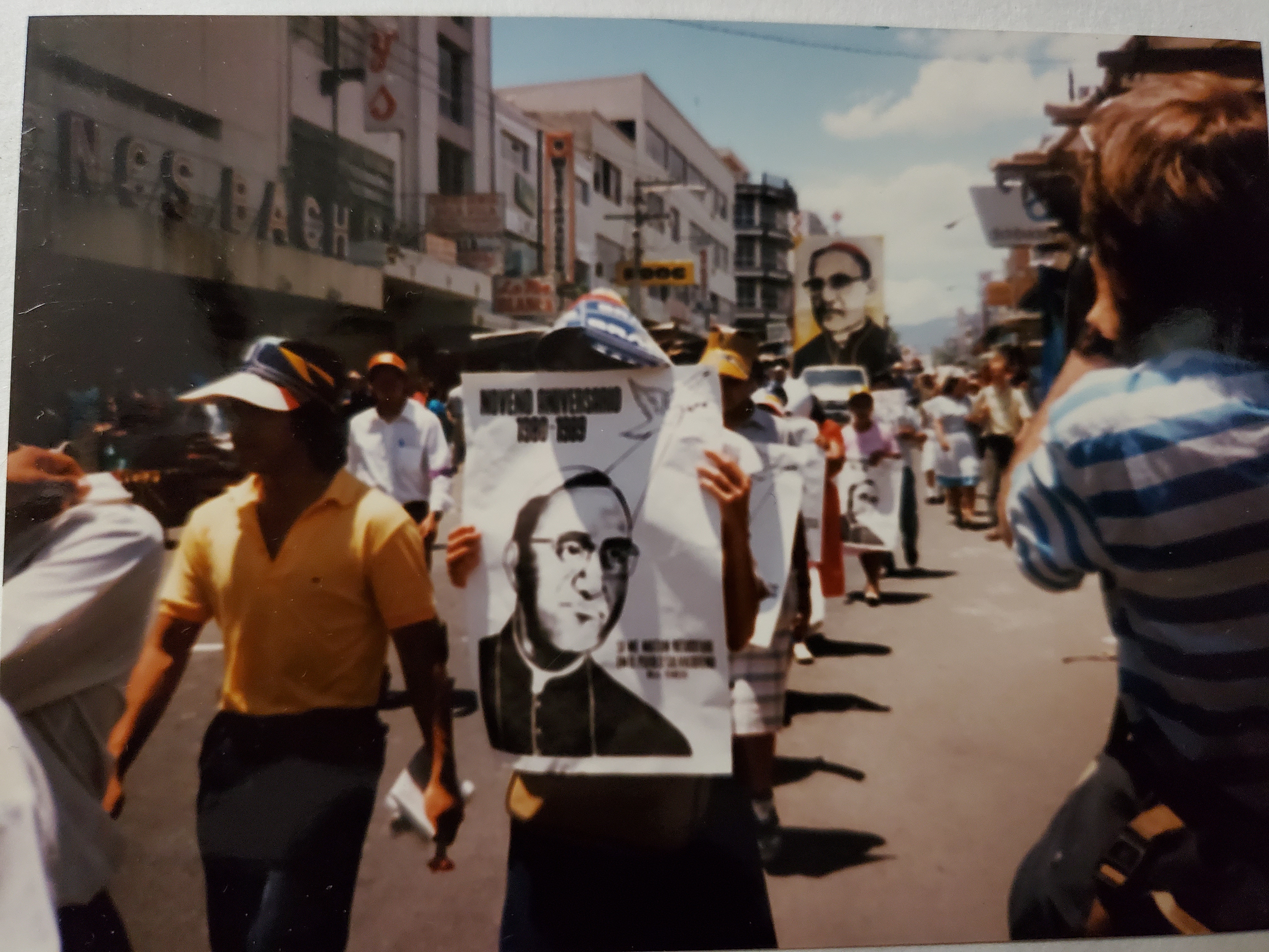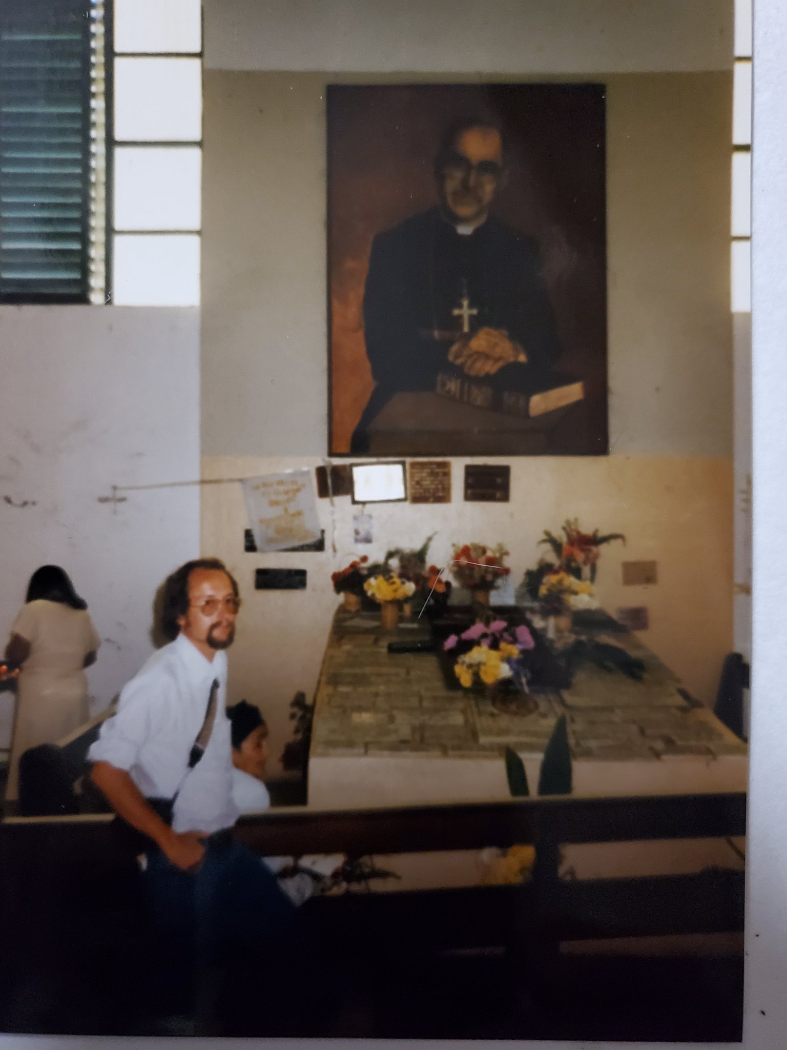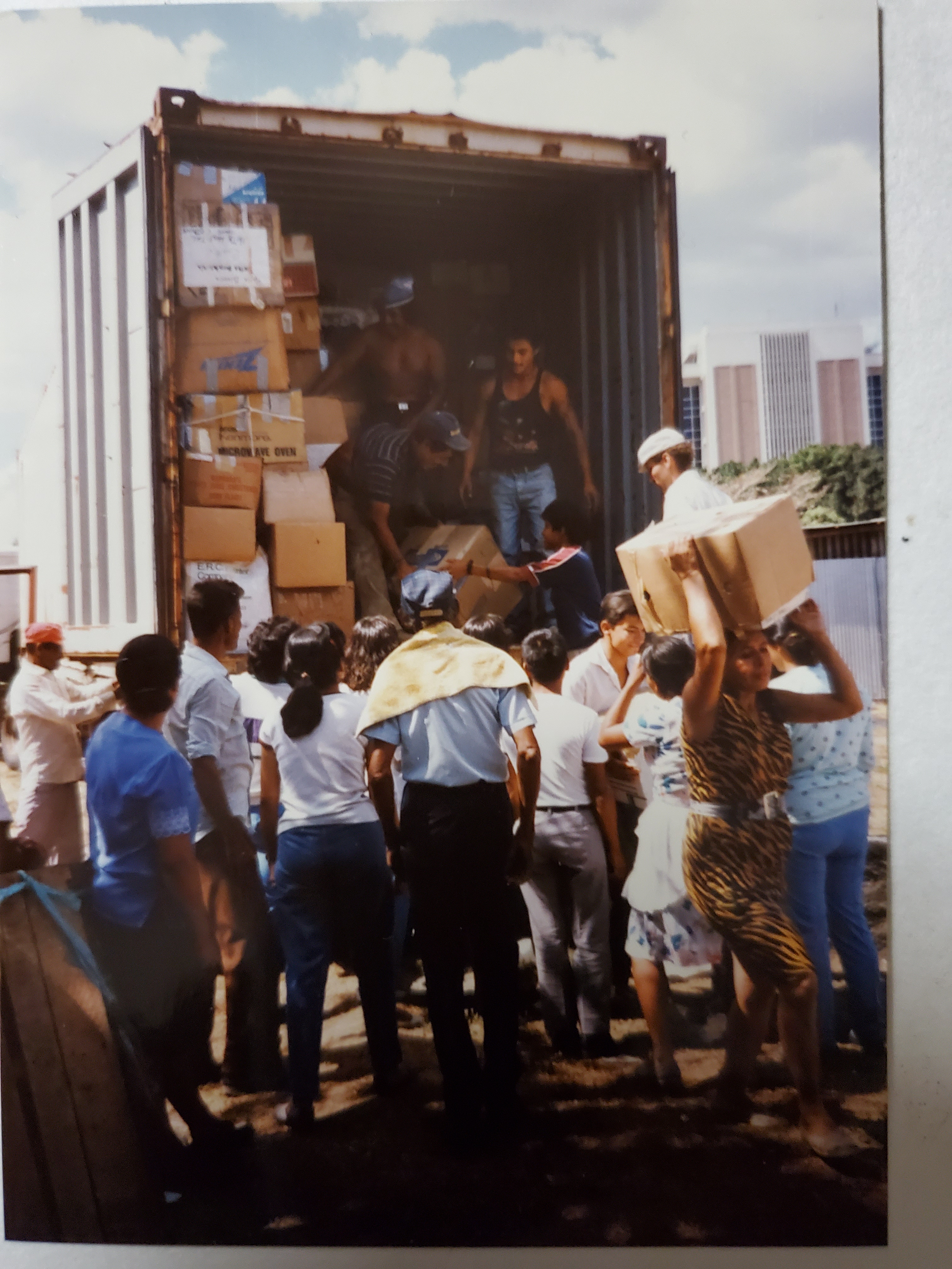 Here, I am in El Salvador helping the co-coordinator of the group hosting us, make a banner for a coming demonstration. Days after my last conversation with her while on my 5-day bus trip back to U.S., Tita Guzman, a 24-year-old mother of two, was disappeared and never seen again. It was later discovered that she had been taken to the infamous Treasury Dept and tortured. I dedicated my house in her honor! Below: I was the first to do so, but we caused a cultural stir when we all joined the Salvadorian women at the river to wash our clothes. Why weren’t our women washing the men’s clothes? Such a scandal! * Saint Oscar Romero, Salvadoran Roman Catholic archbishop who was a vocal critic of the violent activities of government armed forces, right-wing groups, and leftist guerrillas involved in El Salvador’s civil conflict. He was assassinated in 1980, and he is celebrated as a martyr for his defense of the poor. * Because of paperwork hassles hauling aid through Mexico, Guatemala and into El Salvador, all the aid was shipped by boat. Aid arrived by truck from the port.Part of human assembly line unloading the truck. A job well done loading the storage building in extreme humid heat.