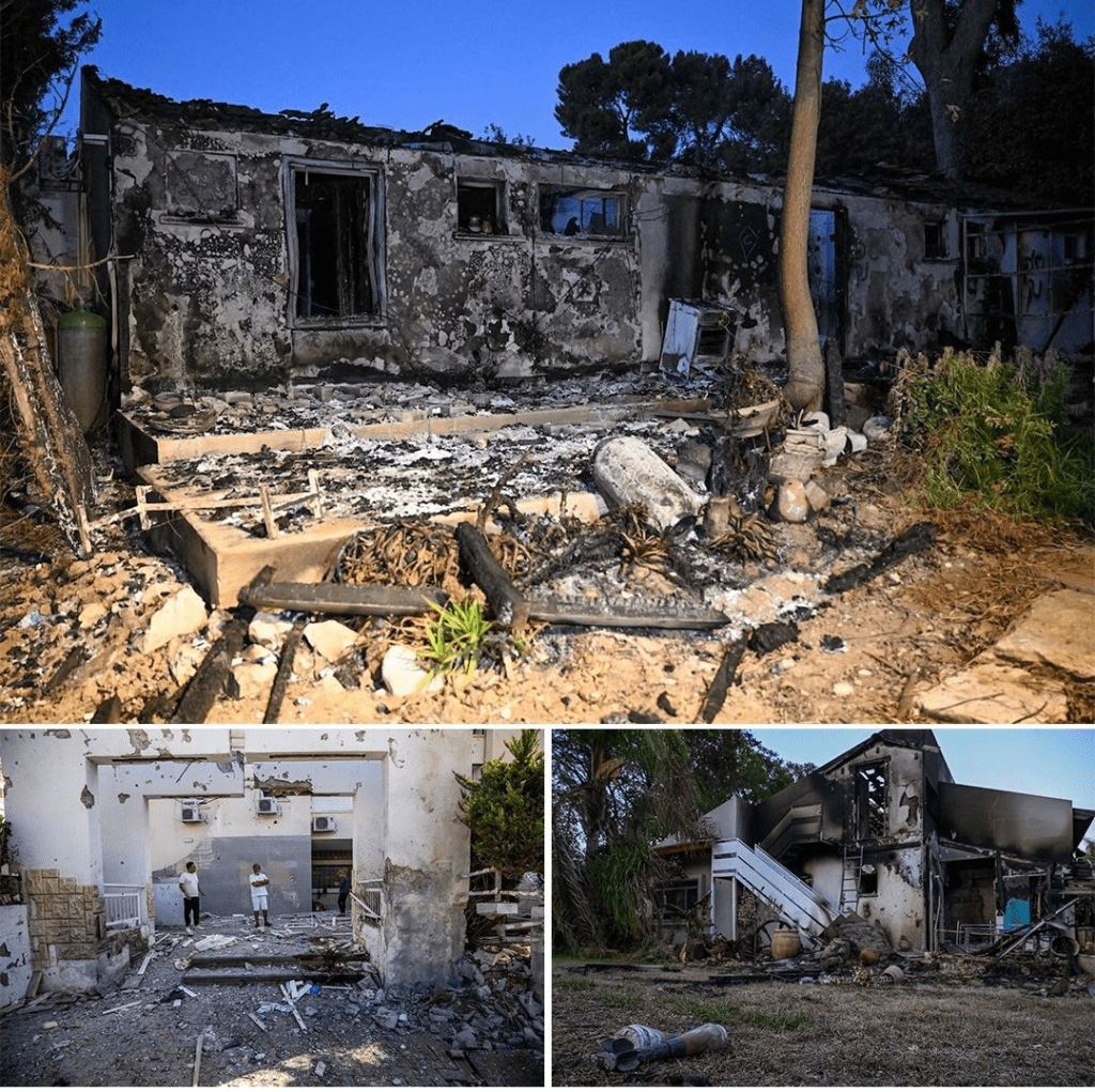 Aftermath or Be’eri Kibbutz after the fire power of the two sides ceased