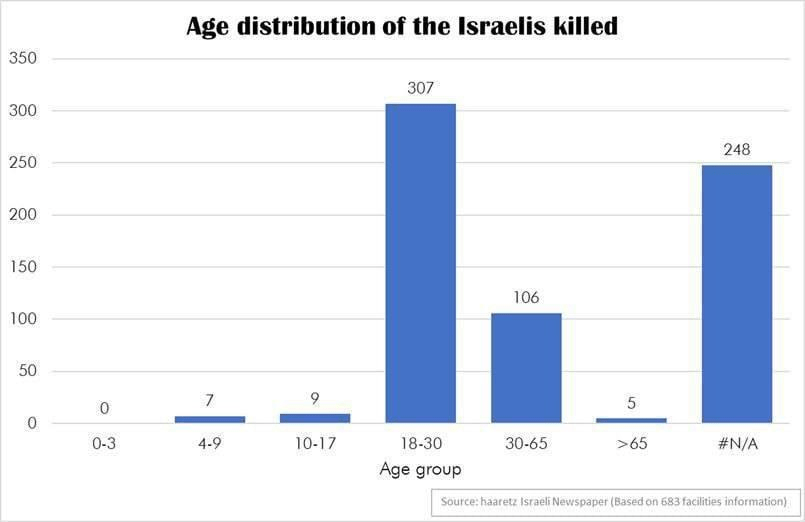 Instead of the wholescale massacre of civilians claimed by Israel, incomplete figures published by the Hebrew newspaper Haaretz show that almost half the Israelis killed that day were in fact combatants – soldiers or police.